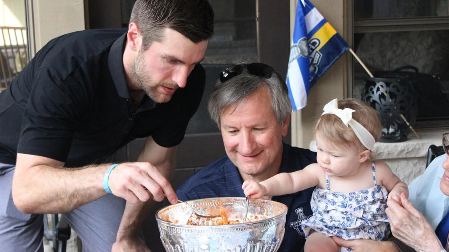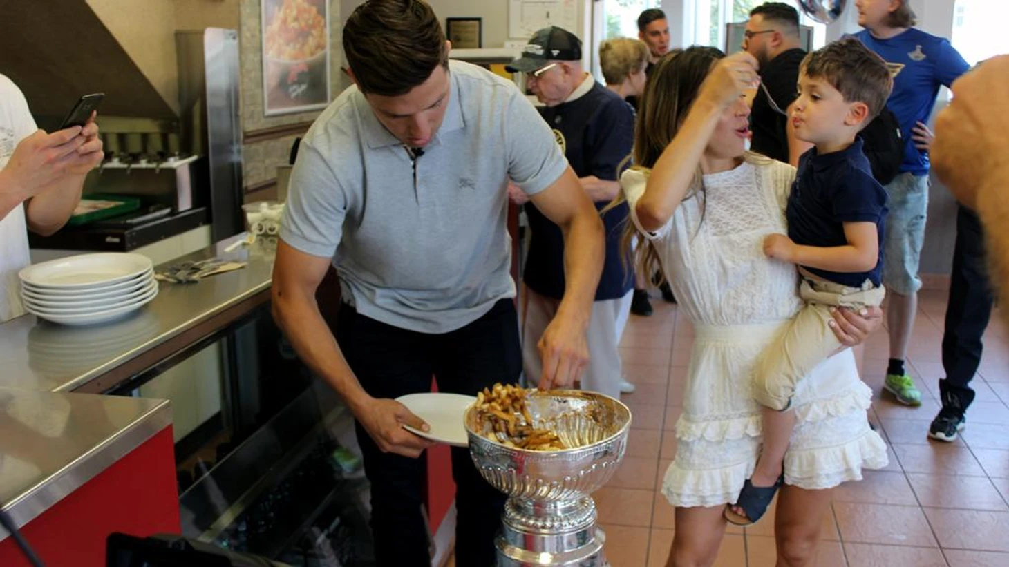 Капитан «Блюз» Алекс Пьетранжело привез КС поиграть в гольф. Гольф клуб находится в Кинг-Сити, в 30 милях от Торонто.  Ну а затем Алекс накормил своих детишек и родственников пастой, прямо из чаши Кубка. Он первый в составе «Блюз», кто решил отведать чего-нибудь из трофея.