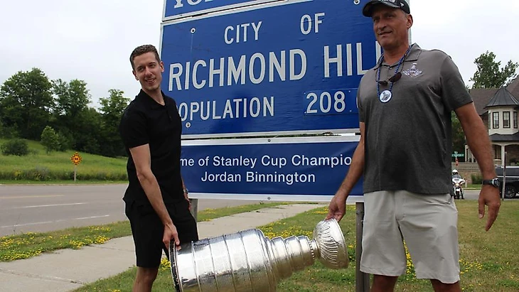 Джордан Биннингтон привез Кубок в Ричмонд Хилл, который находится недалеко от Торонто. Там он заехал к своим родителям,  дедушке с бабушкой, посетил полицейский участок, встретился с жителями, посетил стейк хаус и наведался к мальчишке по имени Кевин. Кевин, пожалуй, главный фанат вратаря «Блюз». Кевин знал, что его мама работает с человеком, который лично знает Джордана, поэтому он сделал поздравительную открытку вратарю и попросил маму, чтобы она через коллегу передала ее своему кумиру. В итоге Джордан сам приехал к Кевину, чтобы забрать эту открытку и заодно показать мальчишке Кубок Стэнли.