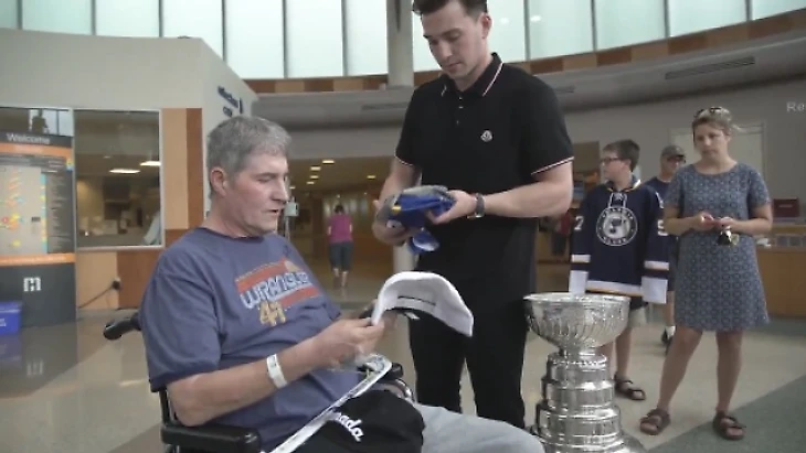 Винс Данн наведался в госпиталь к Лоуни Вудкоку, который борется с раком. Лоуни большой фанат «Мэйпл Лифс», но в этом году, он решил, что будет болеть за «Блюз», если его любимая команда закончит плей-офф раньше. Он посмотрел все игры «Блюз» находясь в больнице. Поэтому Винс решил поддержать Лоуни, привезя к нему заветный Кубок.