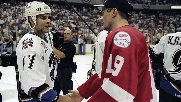 Стив Айзерман и Адам Оутс пожимают друг другу руки. Айзерман стал лучшим игроком плей-офф, а Оутс так и не смог покорить вершину НХЛ.