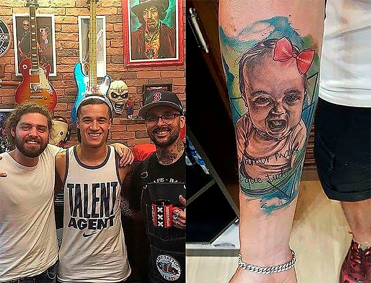 В 18 лет Коутиньо хвастался тем, что у него их нет, но сейчас левая рука забита целиком, а на правой изображен только портрет дочери.