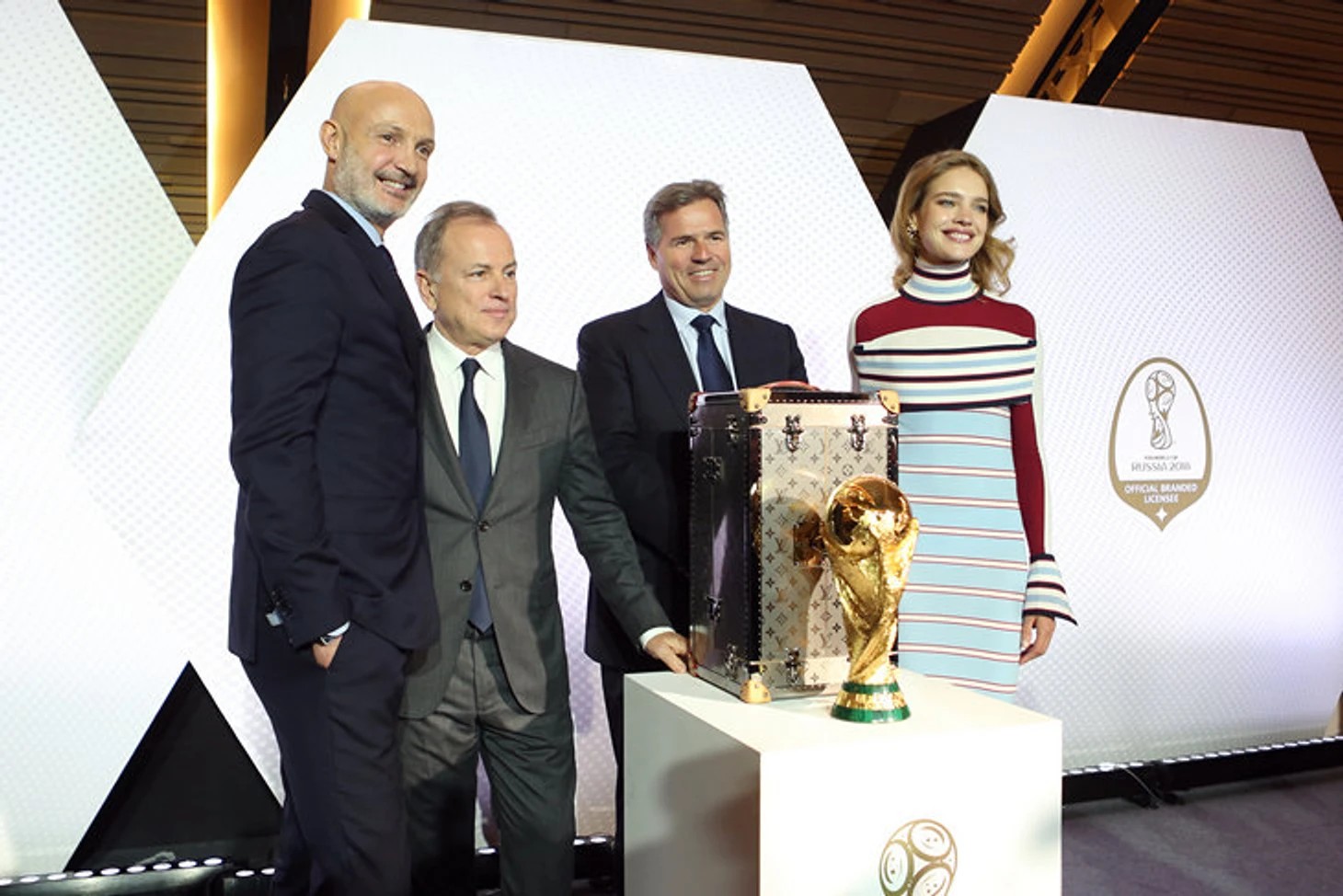 Перед ЧМ-2018 в России Louis Vuitton вновь получил заказ от ФИФА. На этот раз бренд обновил дизайн кейса, а в презентации участвовала Наталья Водянова, посол турнира.