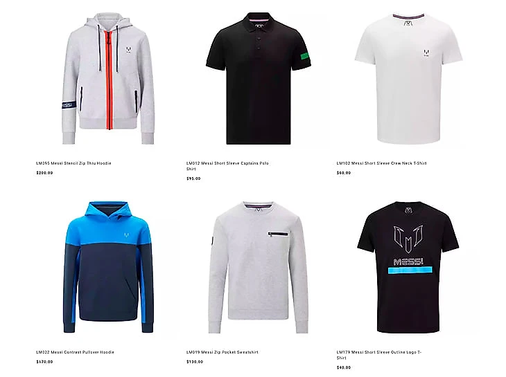 Основная площадка для продажи вещей бренда Месси – интернет-магазин The Messi Store. Сейчас на сайте есть лукбук, где Лео позирует, к заказу доступны шесть вещей: две футболки, поло, свитшот, худи и кофта на замке.