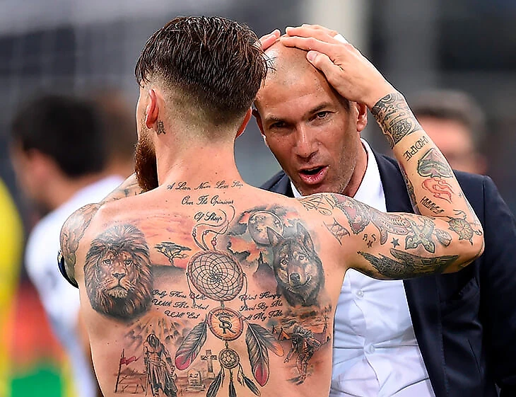 В сентябрьской документалке Рамос рассказывал про татуировки в финальном эпизоде под названием «Наследие». Мастер Родриго Гальвез (он работал с баскетболистом Лукой Дончичем и певцом Марком Энтони) набивал футболисту на голени серию тату с сюжетами из детства, юности и «Реала». «Эти картинки и рисунки иллюстрирую мою жизненную траекторию», – объяснял Рамос. Видимо, этот тезис применим ко всем татуировкам на теле испанца.