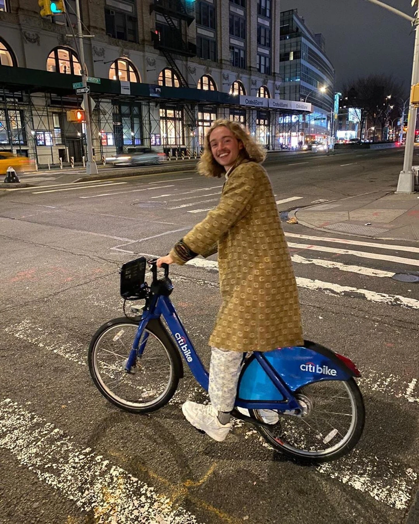 В гардеробе Дэвиса есть Gucci и даже сумка Louis Vuitton (футболисты любят такие). Вот он в шерстяном пальто от итальянского бренда за 3 500 долларов катается на арендованном велике по Нью-Йорку: