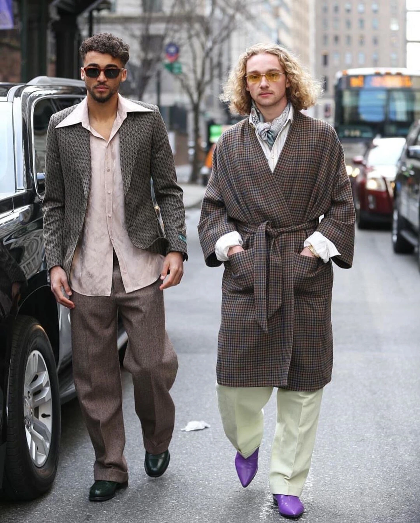Если Кэлверт-Льюин выглядит понятно и органично вписывается в антураж (рецензия из твиттера: он будто детектив из телесериала 80-х, который идет в клуб под прикрытием), то Дэвис тотально уничтожил все шаблоны халатом и сиреневыми туфлями.