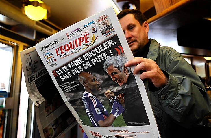 На следующий день L’Équipe вышла с Анелька на обложке и его цитатой в адрес Доменека: «Пошел ты к черту, грязный сукин сын». Их версия звучала так: тренер попросил Николя поменять позицию на поле и меньше обороняться – футболист в ответ послал Раймона.