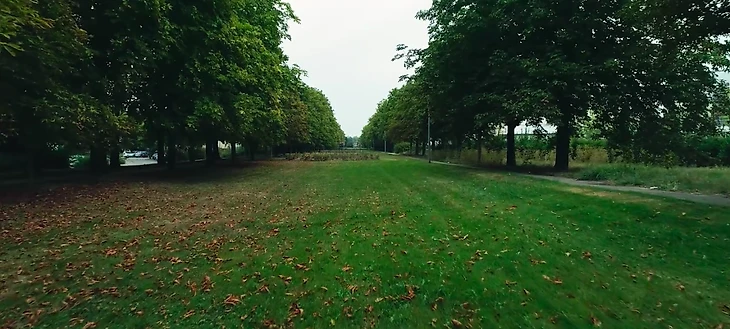 Анелька бежит по узкой дорожке, разделяющей две ее части.