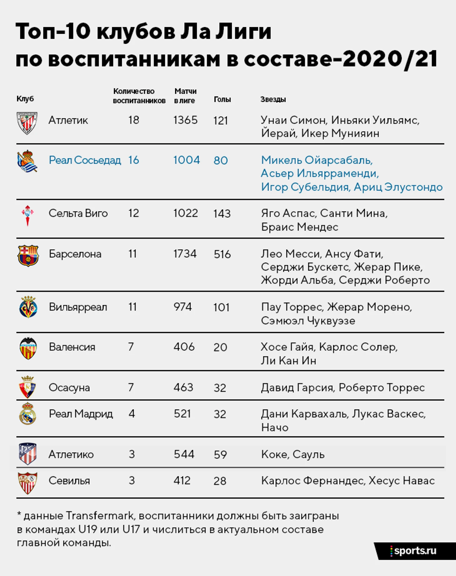 «Реал Сосьедад» с 16 воспитанниками – среди лидеров Ла Лиги. Их академия супер: команды строят в одном стиле, образование ценят не меньше футбола
