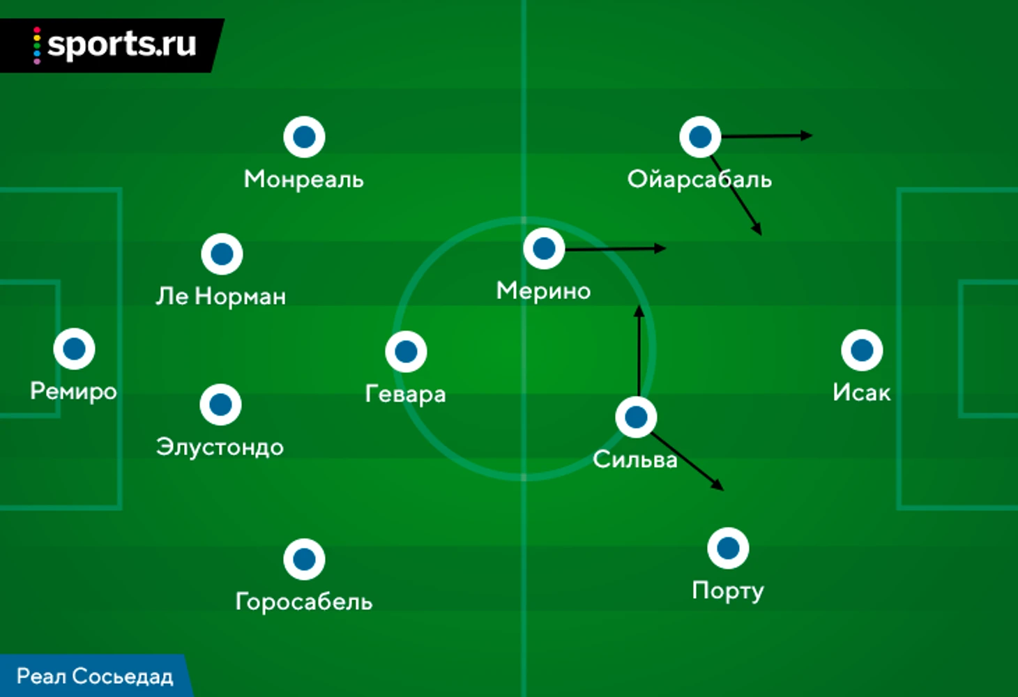 При этом Альгуасиль не любит чистую импровизацию. У команды есть четкие перестроения в рамках стартовой схемы 4-3-3. Самое простое – переход на 4-2-3-1 без смены персоналий (Давид Сильва становится десяткой, а Микель Мерино – вторым опорником). Это уместно на отдельных этапах матчей – особенно когда нужно экономить силы Давиду.