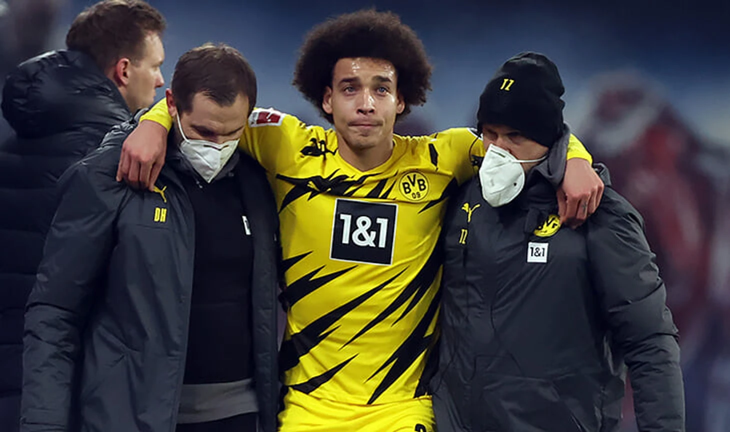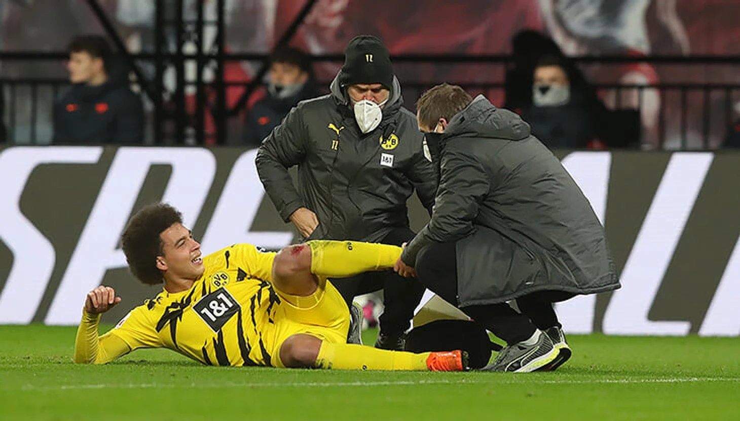 9 января 2021 года. Дортмундская «Боруссия» играет с «Лейпцигом», на 28-й минуте Витцель безо всякого контакта падает на газон и держится за ногу.