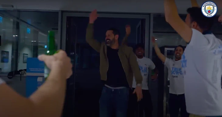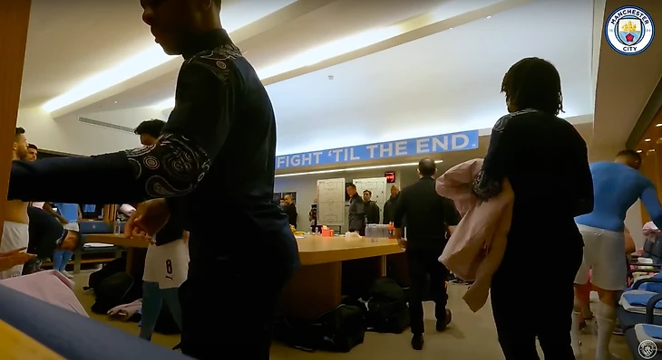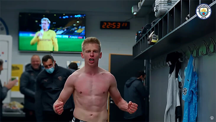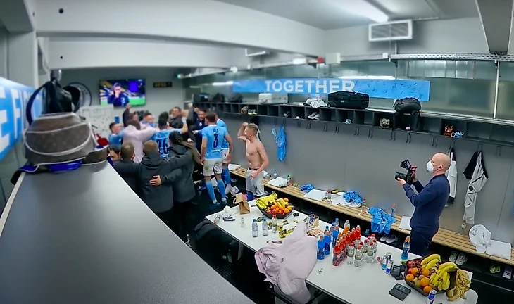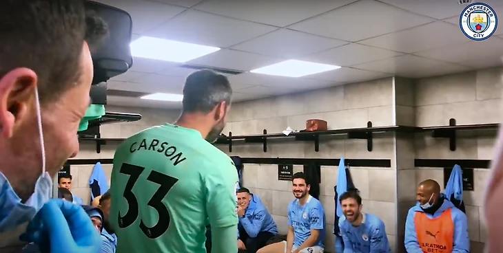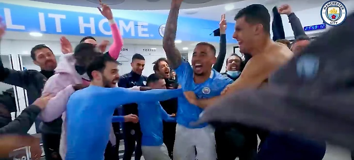 «Ман Сити» побеждает, после празднования на поле футболисты возвращаются в раздевалку, где врубают песню, поют It’s Friday then it’s Saturday, Sunday и танцуют. Некоторые игроки по видеосвязи созваниваются с семьями, потому что из-за вируса живут в пузыре.