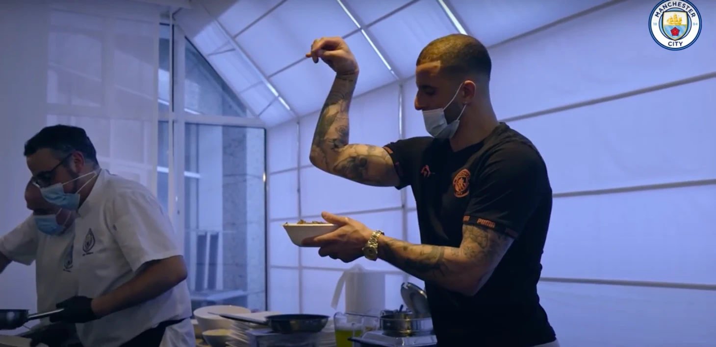Первая находка ждет зрителя уже после заселения «Ман Сити» в дортмундский отель Radisson. Повара готовят еду. Внезапно среди них засекли Кайла Уокера в позолоченных часах и сковородкой в руках. Футболист признается на камеру, что иногда разгружает поваров и сам себе готовит пасту болоньезе.