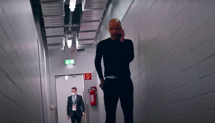 Пеп после матча тоже с телефоном, но с кем он болтает, неизвестно.