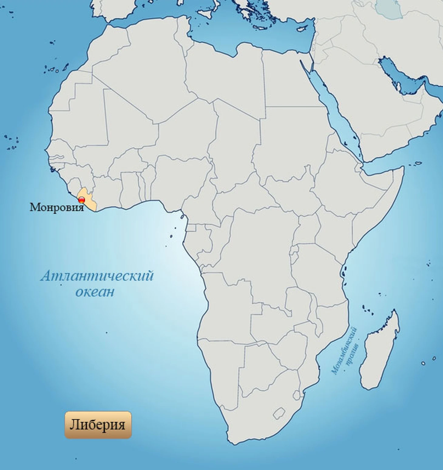 Да, похоже на флаг США. Только вместо звездочек одна звезда. А еще столица Либерии – Монровия. Называется в честь 5-го президента США Джеймса Монро. Конституцию тоже писали под влиянием американской. Тут сразу становится ясно, что какая-то связь между Либерией и Штатами есть. Подсказку можно найти в названии страны и ее девизе: «Любовь к свободе привела нас сюда».