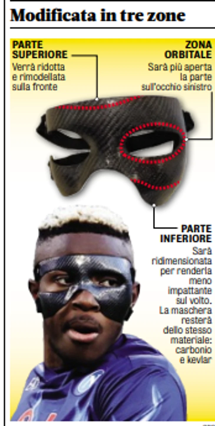 В конце января Виктор прошел плановый осмотр. Врачи констатировали, что кости срастаются, а рубцы и отеки ушли. Поэтому Осимхену заказали новую маску: ее облегчили, укоротили сверху и снизу, добавив больше места в районе глаз.