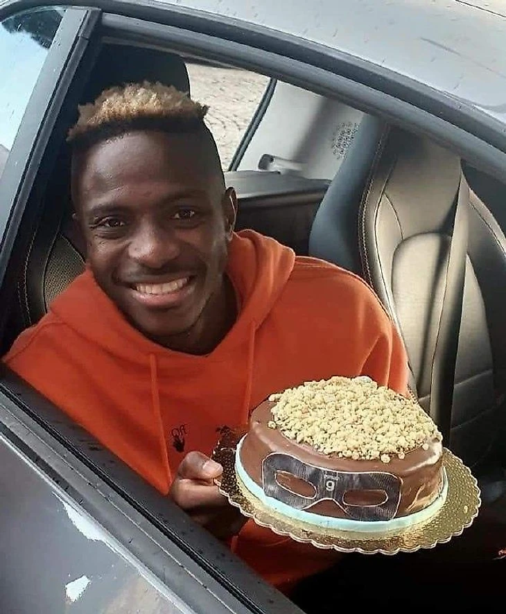 Одна из кондитерских города делает шоколадные торты, посыпанные песочной крошкой в стиле прически Осимхена. Торт украшен черной маской, на которой написаны фамилия и номер Виктора.