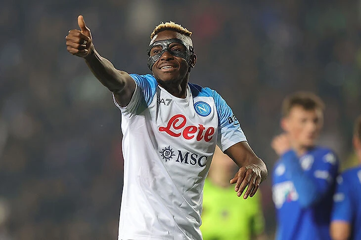 Осимхен жестко травмировался в матче с «Интером» в ноябре 2021-го. На 50-й минуте при счете 1:2 форвард неудачно поборолся в воздухе со Шкриньяром – и лицом впечатался в голову игрока «Интера». В итоге нигериец выбыл до конца года и пропустил Кубок Африки.