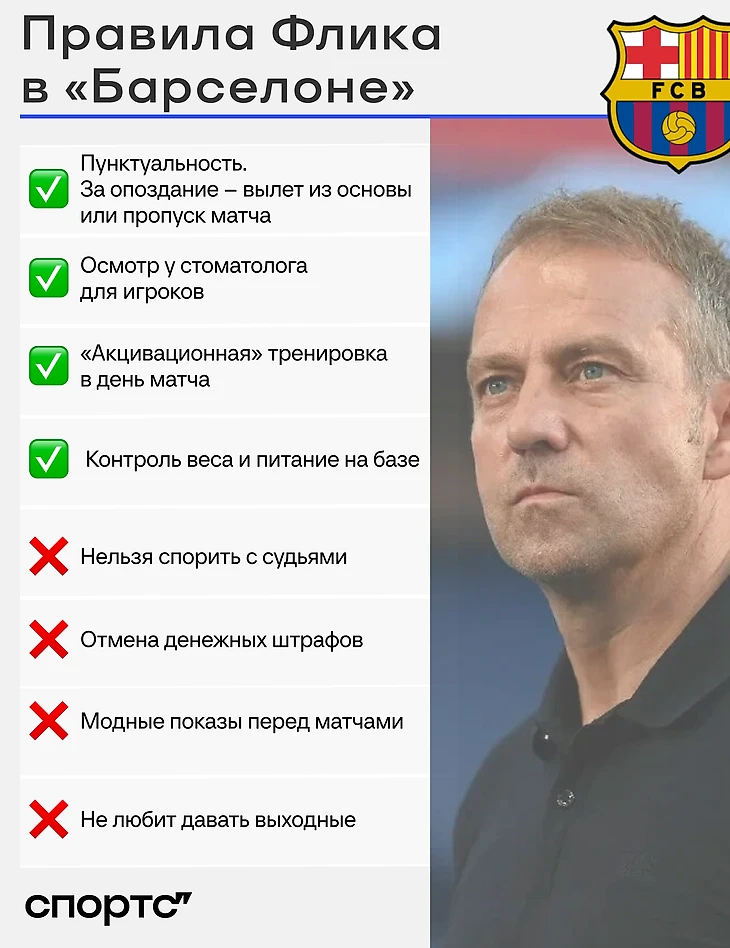 «Флик очень строгий насчет пунктуальности. Если он скажет быть на поле в 11:00, а ты не успеешь на три секунды, для него это опоздание», – говорил нападающий «Барселоны» Пау Виктор.