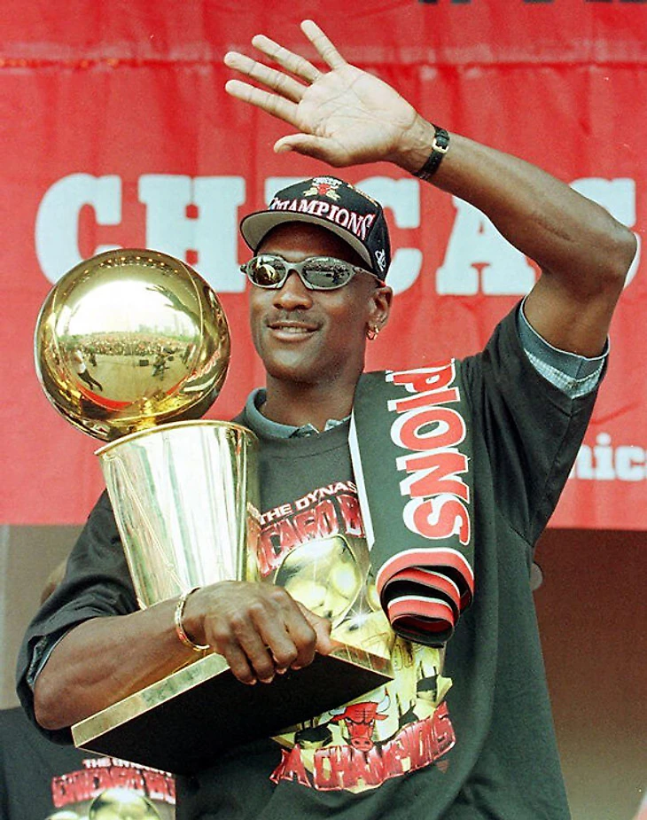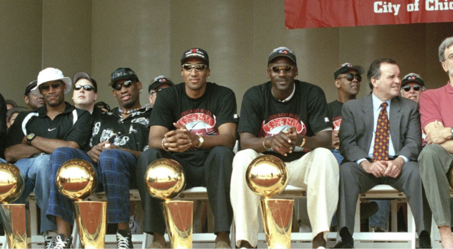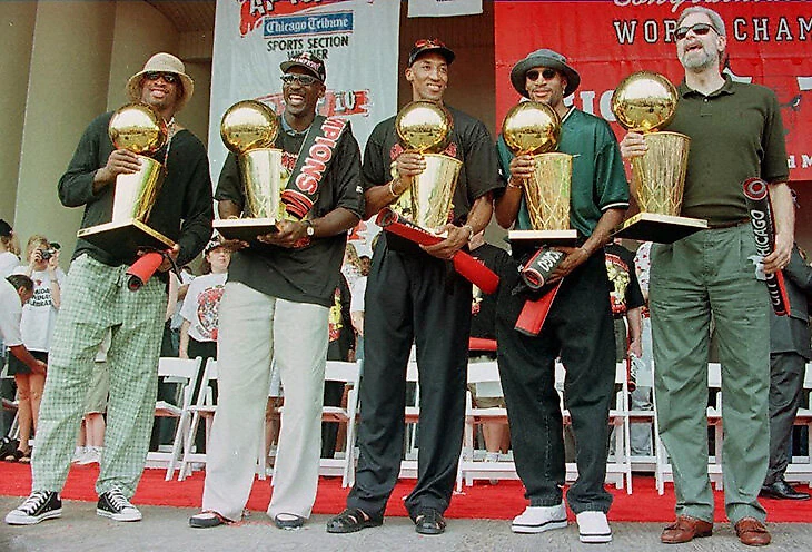 Фото трио «Барсы» очень напоминает снимки с празднования «Чикаго Буллз» шести титулов в Грант-парке в июне 1998 года.