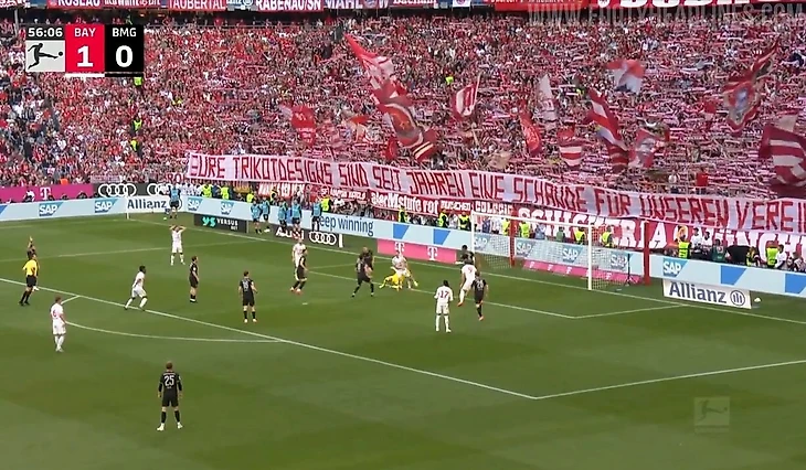 Последний домашний матч «Баварии». Хозяева ведут против «Гладбаха». После свистка уже запланированы празднования титула. И вдруг за воротами растянули огромный баннер со словами «Ваша форма позорит наш клуб уже много лет».