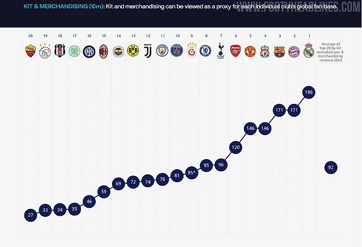И хоть активные фанаты «Баварии» бесятся, форму команды покупают очень хорошо. По доходам от продажи атрибутики (согласно отчету УЕФА «по финансам футбольных клубов и инвестиционному ландшафту» за 2024 финансовый год) мюнхенцы делят второе место с «Барселоной» с заработком в 171 млн евро в год. Больше генерирует только «Реал» – 196 млн.