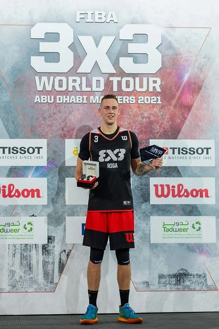 Триумфом баскетболистов клуба "Рига" закончился шестой этап Мирового тура "Мастерс" по баскетболу 3x3 в Абу-Даби. Рижский клуб в составе с олимпийскими чемпионами Агнисом Чаварсом, Наурисом Миезисом, Карлисом Ласманисом и Эдгаром Круминьшем одолели своих "заклятых" конкурентов сербский клуб "Уб" 21:18.