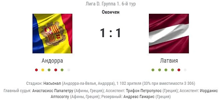 В рамках шестого тура розыгрыша Лиги наций сборная Латвии на выезде сыграла вничью с Андоррой - 1:1.