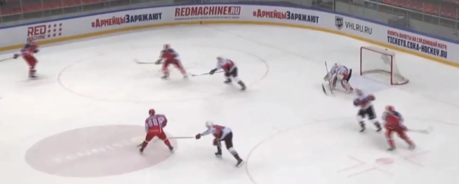 Эта стратегия принесла свои плоды, обе команды забросили по шайбе таким образом. В случае с подобным голом новокузнечан ошибку допустил защитник «Звезды», который начал искать шайбу, вместо того чтобы лишить Семена Иванова возможности сыграть на добивании.