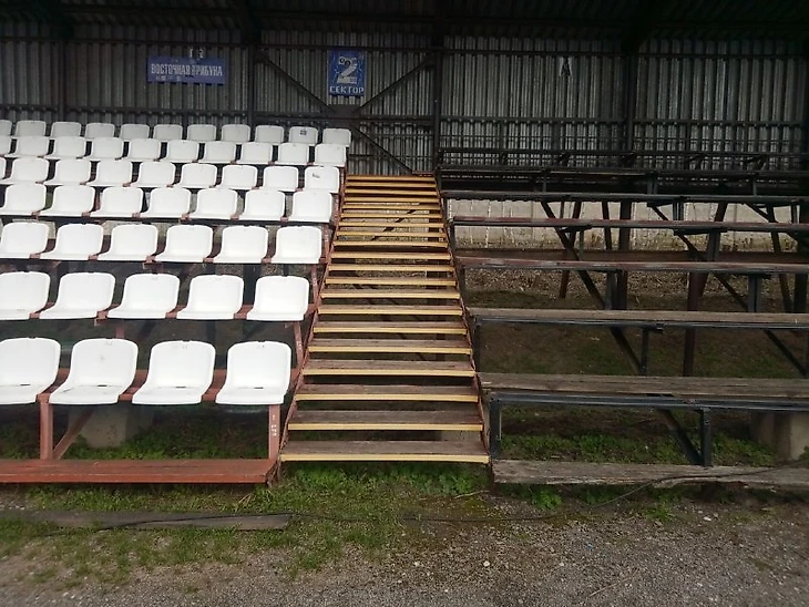 Стадион хранит следы от болельщиков команд-гостей, а также на нём есть портал в прошлое. По крайней мере, так я для себя обозвал вот этот участок на восточной трибуне.