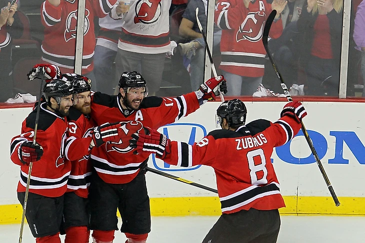 Ударив по рукам с ГМ дьяволов Лу Ламорелло, Зубрус как влитой вписался в оборонительный хоккей, сперва Брента Саттера, а потом и Жака Лэмера. Большой, умный, двусторонний форвард, который мог играть и в центре и на флангах, пахарь и «киллер» меньшинства, очень ценился старым лисом Лу,во многом благодаря этому «дьяволы» стали по настоящему родной командой для парня из маленького Электреная. Целых 8 лет он отыграет в Нью-Арке. Болельщики полюбят «Зуби» за трудолюбие и открытость, за старание и профессионализм. После пары лет безуспешных попыток пройти первый раунд плей офф, Лу обратит свой взор на молодого коуча Питера ДеБура, который совсем недавно неплохо проявил себя во Флориде. И команда заиграет другими красками, «Девилс» во главе с Ковальчуком и Паризе выйдут в финал КС сезона 11-12 и проиграют «королям» из Лос-Анджелеса. Это второй финал проигранный командой Дайнюса, проигранной команде которая вышла с 8 места на западе и проигранной без шансов 2-4.