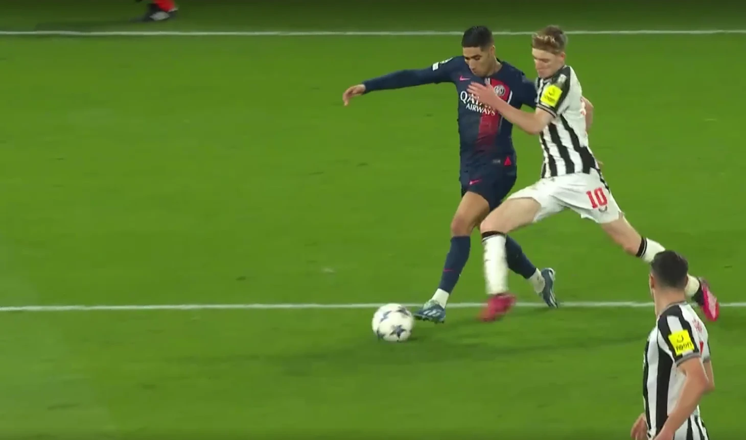 На первых двух скриншотах видно, что Аштраф был первым на мяче: