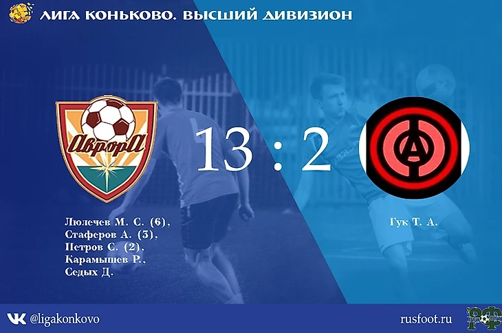 Матч для команд ничего не решал. Аврора наигрывает игровые связи в преддверии нового сезона. Акрус хочет доказать, что команда боеспособная и готова биться с сильными соперниками. Но так получилось, что на эту игру у Акруса не приехали многие основные игроки, в ворота встал полевой игрок и вообще пришлось играть без замен. У Авроры напротив, скамейка была внушительная и это еще при отсутствии многих ключевых игроков. Все вышеперечисленное и сказалось на ходе игры. Аврора доминировала на всех участках поля, играла спокойно, без суеты. Михаил Люлечев, который вышел на замену(это был его дебют в Лиге Конькова) раз за разом поражал ворота соперника. К чести игроков Акруса, можно сказать, что играли до конца, забили дважды, но могли и больше.