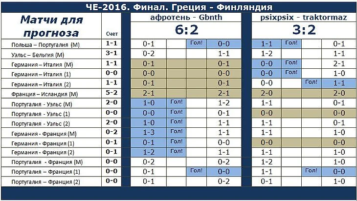 Хочется поздравить всех с окончанием такого прекрасного турнира, как Евро-16! Я уверен в том, что у участников останутся только положительные эмоции от этого турнира! Поздравляю сборную Греции с победой в турнире) Остальным игрокам советую не отчаиваться и продолжать улучшать свои выступления в турнирах Лиги Инсайд! И: