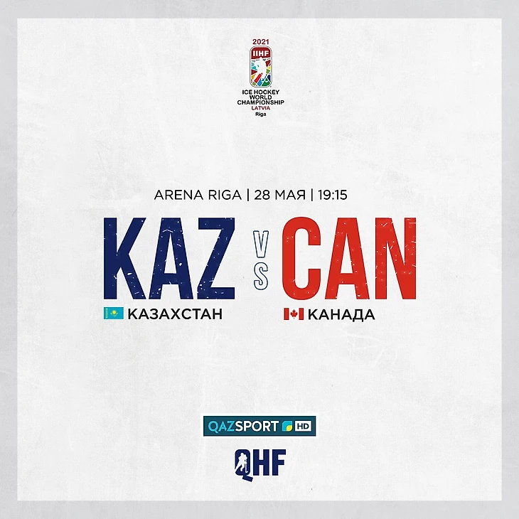 Матч Казахстана – Канада начнется в 19:15 по времени Нур-Султана, эту встречу в прямом эфире покажет телеканал «QAZSPORT».