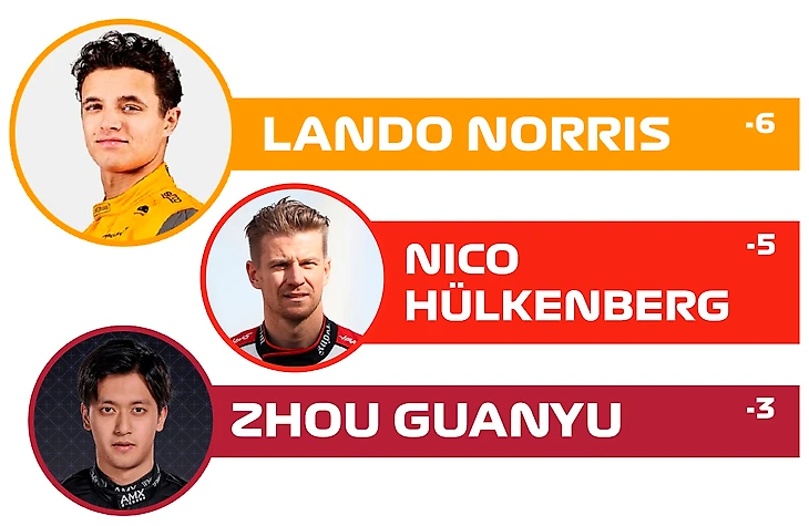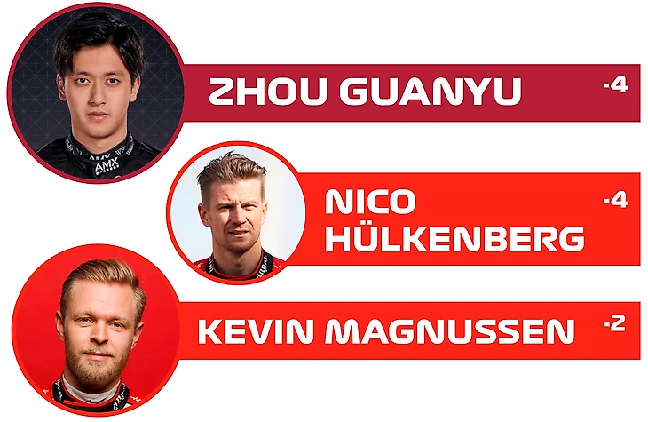 Неудача на старте постигла Чжоу Гуанью - его стартовая позиция за номером 13 разом превратилась в 17-ю. С таким же результатом (минус 4) к началу второго круга добрался и ветеран-новичок «Хаас» Нико Хюлькенберг. Чуть лучше (всего минус 2 позиции) стартовал Кевин Магнуссен.