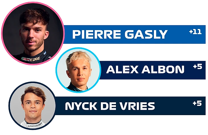 «Асто Мартин» оказался и в тройке лидеров по набранным позициям. Однако лучше остальных в этой категории себя проявили гонщики «Уильямс» - на двоих они отвоевали аж 9 мест! Чуть хуже (плюс 8 позиций на двоих) выступили гонщики «Альфа Таури», однако до очков они не добрались. Смогут ли они улучшить итог прошлого года, когда команда заняла предпоследнее место в Кубке конструкторов, или же это будет очередной разочаровывающий сезон для поклонников «Альфа Таури»? Узнаем совсем скоро.