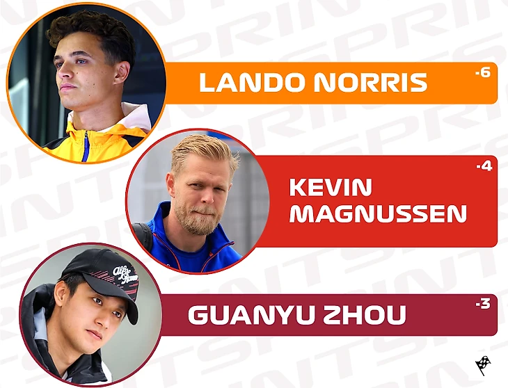 В совокупности по 6 позиций потеряли гонщики двух коллективов - «Альфа Таури» и «Хаас». Однако индивидуально результат хуже у Кевина Магнуссена («-4»). Отмечу лишь, что Нико Хюлькенберг вновь потрясающе квалифицировался, поставил лучший круг в спринте да еще и принес команде 3 очка. С каждым Гран-при немецкий пилот все лучше приспосабливается к машине, чего не скажешь о датчанине.