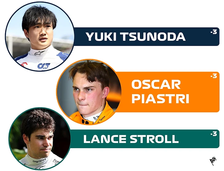 Целая плеяда гонщиков потеряла 3 позиции по сравнению со стартом, включая Юки Цуноду, Оскара Пиастри, Лэнса Стролла, Льюиса Хэмилтона и Карлоса Сайнса. Любопытное совпадение: и японец, и австралиец, и канадец совершили 3 пит-стопа по ходу заезда.