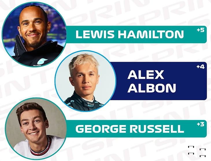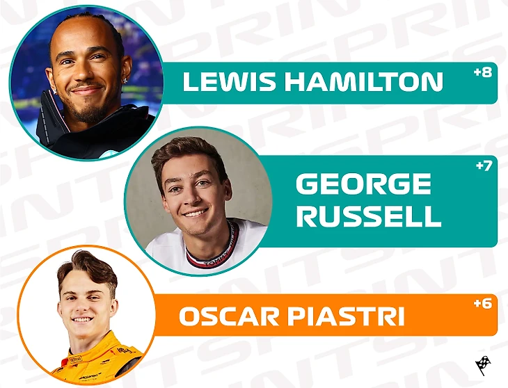 5 позиций со старта отыграл Льюис Хэмилтон, проваливший квалификацию к спринту, а его напарник Джордж Расселл поднялся в протоколе на 3 строки.