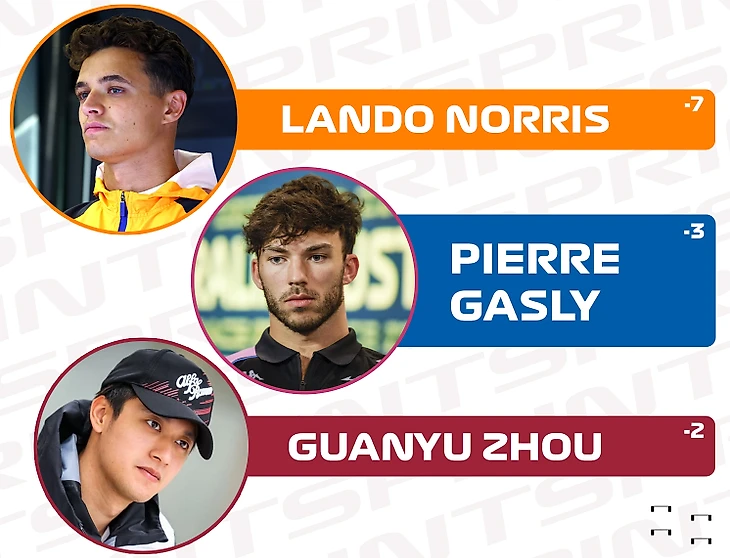 На 5 строк в итоговом протоколе поднялись Гуанью Чжоу и Логан Сарджент. Кстати, 13-е место Сарджента - его второй лучший результат в сезоне после финиша в топ-12 в Бахрейне.
