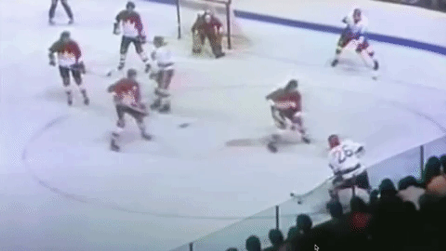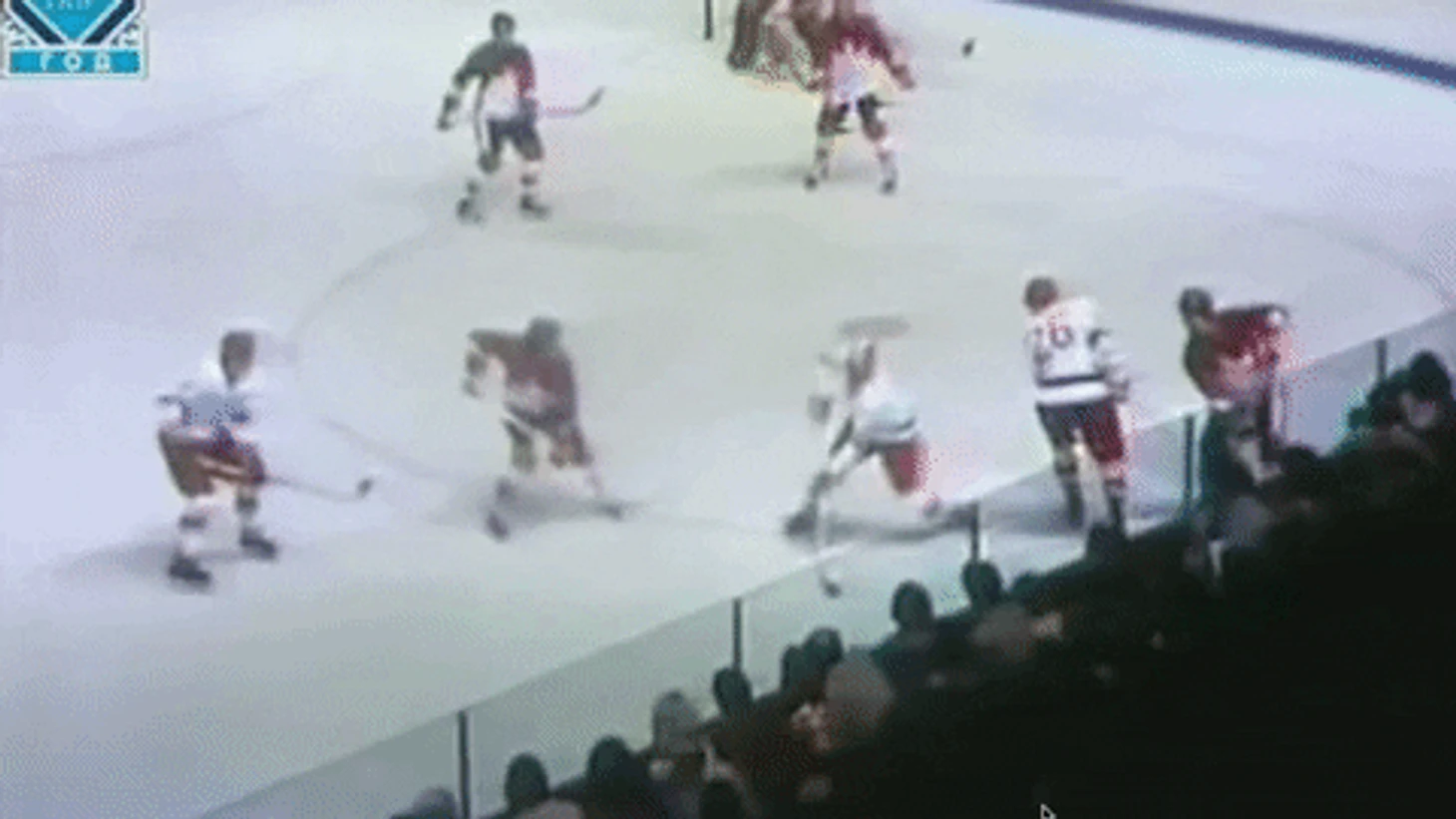 Другую половину своих голов Якушев забил непосредственно с пятака – еще одна канадская фишка. Они и сборной СССР большинство голов положили оттуда. Якушев же был нацелен на пятак даже после того, как протащил шайбу через всю площадку; он не давал канадским защитникам расслабляться.