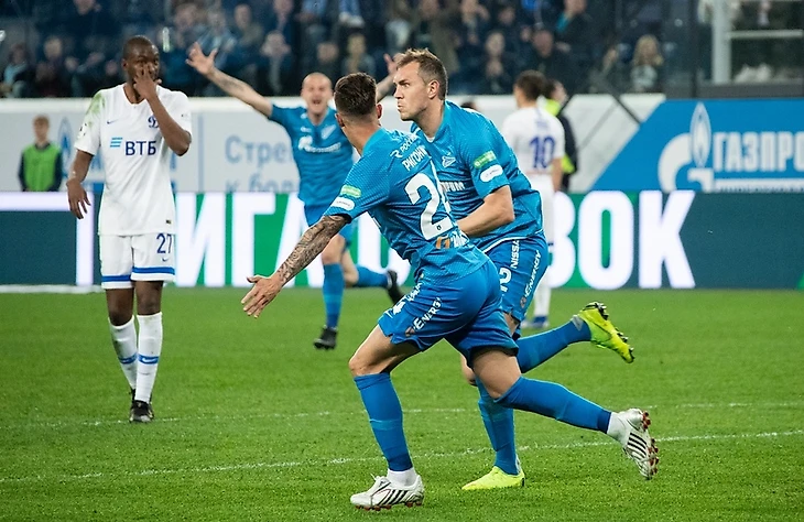 «Зенит» после горячего матча в Краснодаре состав не поменял, ведь, как известно, есть традиция победный состав не менять, хотя повреждение Оздоева могло сломать эту цепь, но Магомед поправился и вышел в стартовом составе. «Динамо» же вышло на поле с пятью защитниками и тремя опорниками, как говорил Артём Дзюба в интервью, «играть на ничью». По первым минутам матча было несложно догадаться, что футболисты Семака потратили много сил и эмоций в матче против команды Мусаева. Москвичи могли открыть счет уже на второй минуте встречи: Юсупов прекрасной передачей разрезал оборону хозяев и вывел форварда Черных один на один с Лунёвым, но вратарь спокойно справился с опасным моментом, отбив удар грудью! «Зенит» ответил же опасным розыгрышем штрафного : Ракицкий навесил на Оздоева, а тот пробил в дальний угол ворот Шунина, к счастью для москвичей, мимо ворот. Барриос в середине первого тайма мог замкнуть прекрасный прострел Козлова в свои ворота, но, к радости колумбийца, мяч пошел над перекладиной. Большое количество углов мы увидели в первом тайме, а вместе с ними парочку ударов по воротам Шунина.