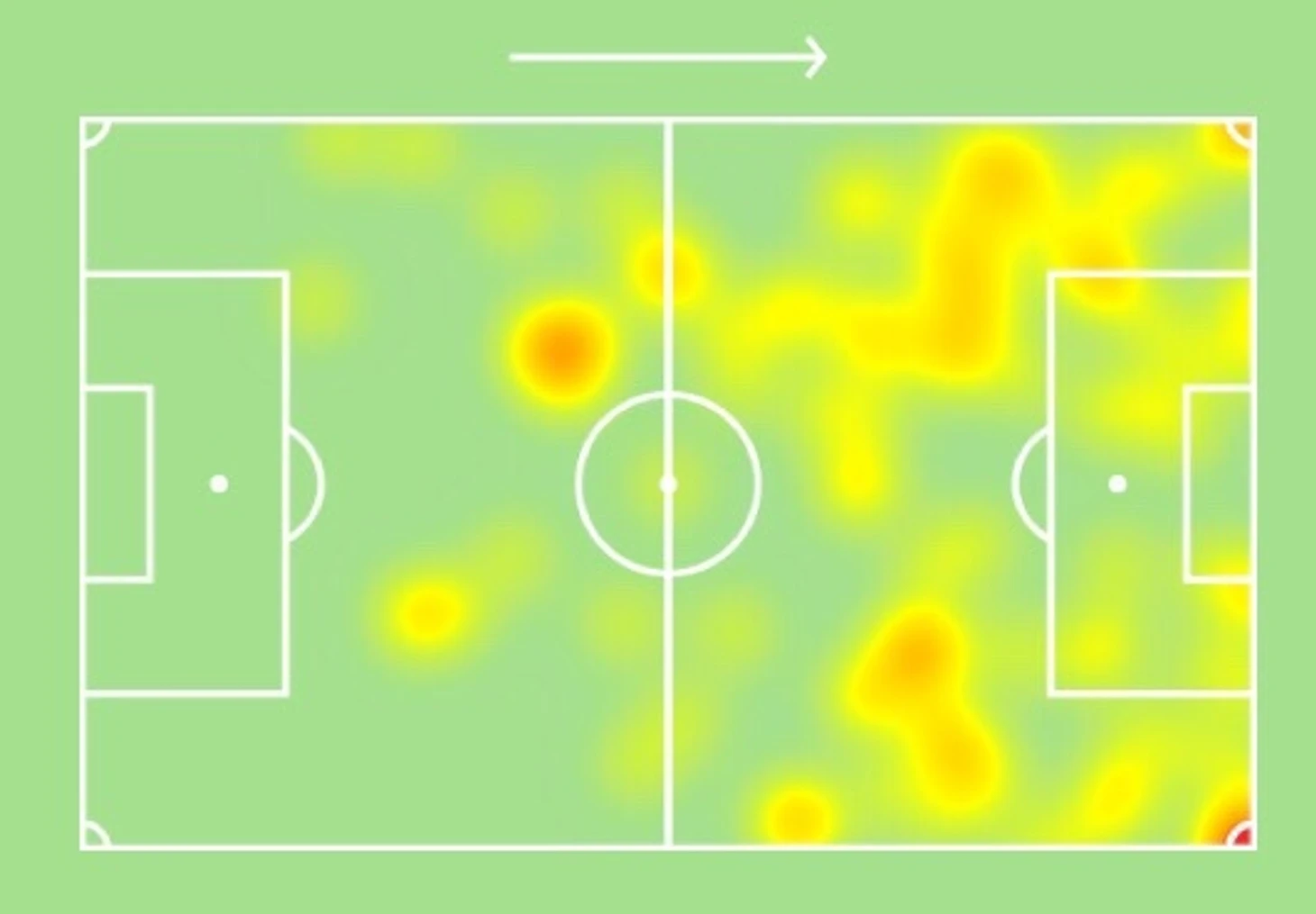 Лучший игрок матча — Александр Головин. Полузащитник «Монако» был очень активен не только в центре поля, но и смещался на фланги и полуфланги при необходимости. Ниже — тепловая карта Александра: