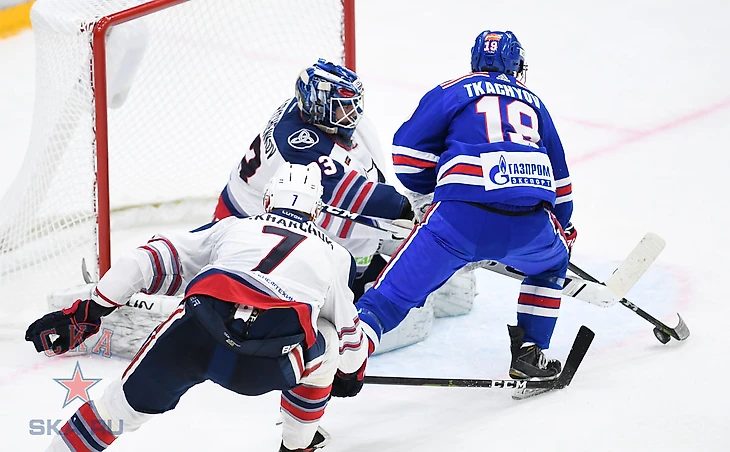 Расстановка СКА с игрой в одного защитника и четыре нападающих не изменилась. И, хотя одно большинство и было реализовано, СКА выглядел всё также беззубо. Не могут «армейцы» держать шайбу в чужой зоне, когда на синей линии один защитник. Любой выброс заставляет СКА откатываться и начинать всё сначала.