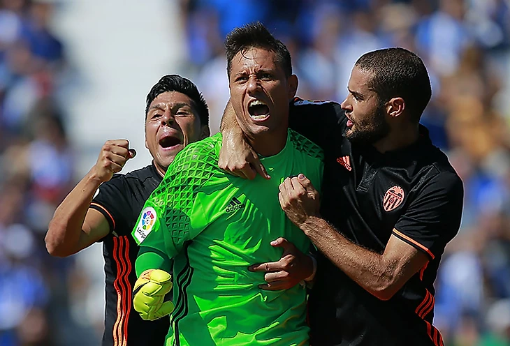За несколько секунд до того, как Марио Суарес незаконно свалил Гризманна, Алвес отбил сложнейший удар Кевина Гамейро в упор. «Валенсия» к тому моменту уже проигрывала 0:1, а Гризманн не мог бить этот пенальти уже по двум серьезным причинам. Поэтому к мячу подошел самый опытный игрок «Атлетико». Габи любят на всех испанских стадионах, и по уровню уважения он почти не отстает от Иньесты. Но Алвес потащил мяч из правого нижнего угла и стал первым вратарем в истории Испании, кто отбил два пенальти в одном матче.