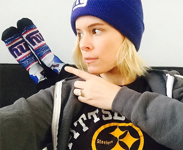 Кейт приходится разрываться, ведь отец работал селекционером в «Джайентс», а родственники со стороны матери (семейство Руни) развивали клуб из Питтсбурга. В знак примирения она снялась в фильме «Мы — одна команда», где сыграла невесту погибшего футболиста.