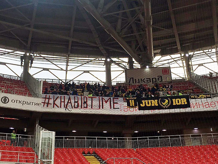 Никто из ребят в форме не поддержал, даже когда шли мимо автобуса «Анжи». На нем висела наклейка с изображением детей, и это была почти правда. Состав клуба из Махачкалы сильно изменился (21 новая фамилия!), омолодился и, видимо, подсушился, раз на гостевом секторе написали, что пришло время Хабиба.