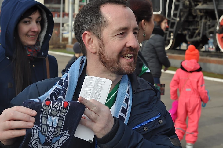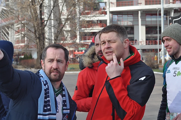 Главного из ирландцев звали Алан (ударение на первый слог). Он болеет за ульяновскую «Волгу», но второй клуб для него — это «Локомотив». За полтора часа до дерби Алан вместе с друзьями показывал приемы из гэльского футбола («В Ирландии он популярнее, чем Робби Кин») — сурового кельтского вида спорта, где рыжие бородачи ломают друг друга, при помощи рук и ног занося мяч в чужие ворота. Алан позвал к ним на тренировку, показал шарф своего любимого «Дублина» (клуба по гэльскому футболу) и сказал, что в дерби будет ничья. Когда он услышал, что одного из болельщиков зовут как Александра Самедова, ирландец попросил не произносить его имя.