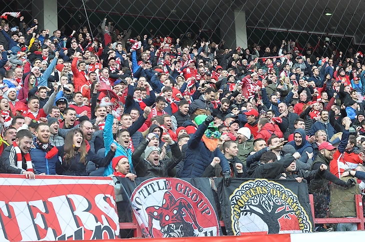 На стадионе «Локомотив», который по вечерам красиво утопает в красно-зеленой подсветке, стало чуть радостнее. Вместо пластилиновых хот-догов теперь предлагают глинтвейн и колбаски на гриле.